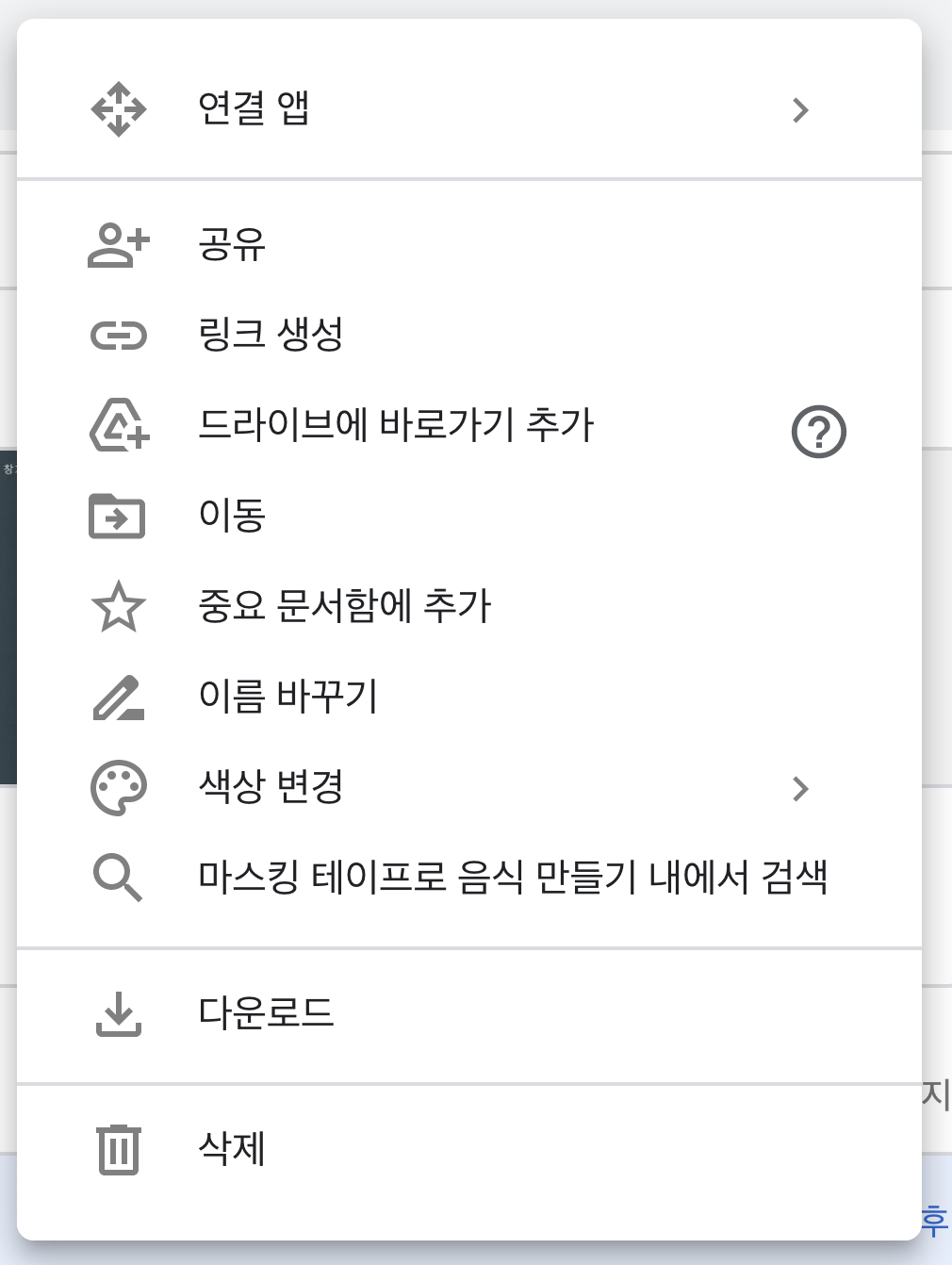 드라이브에 바로가기 추가/인쇄/다운로드(특정 이메일 주소로 링크 전송 가능))/별표 추가/찾기(문서에서 특정 단어 찾기)/문서 세부정보 보기