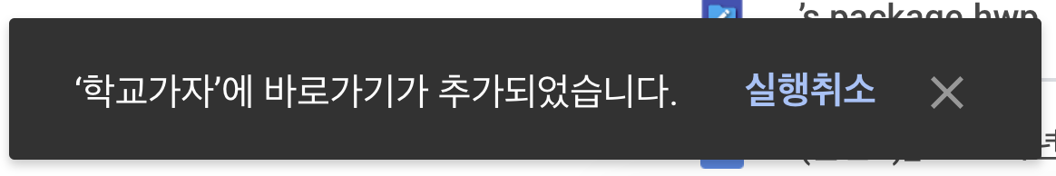 바로가기가 추가되었다는 메시지가 화면의 왼쪽 하단에 뜹니다.