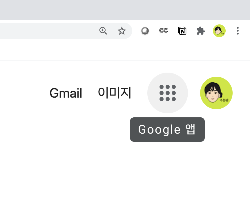 크롬을 사용하고 있다면, 오른쪽 상단에 '이미지'와 프로필 사진 사이의 점 9개 버튼을 클릭합니다. 하단으로 이동하여 드라이브를 클릭합니다.