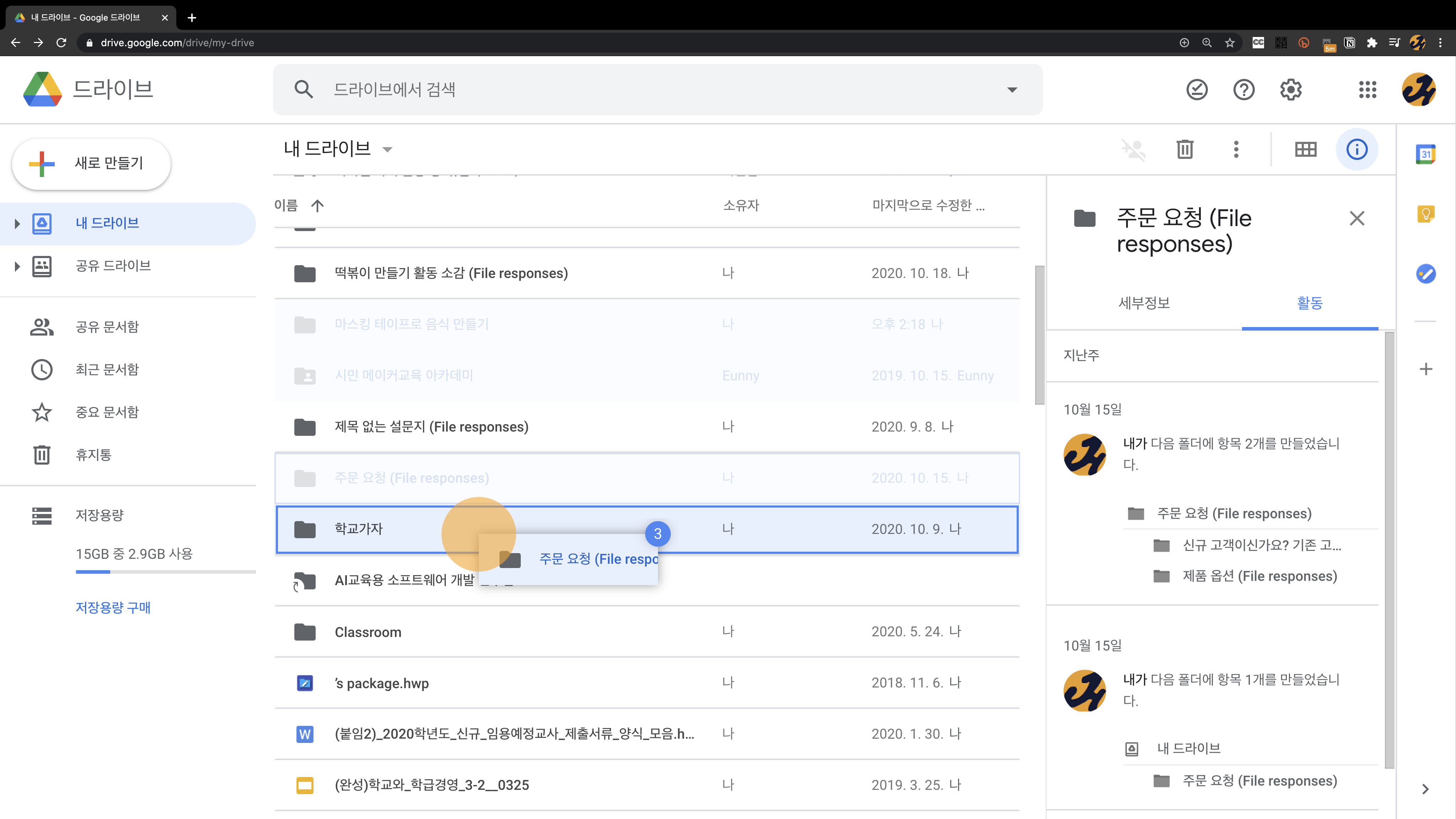 내 드라이브의 해당 폴더로 가서 직접 확인해보겠습니다.