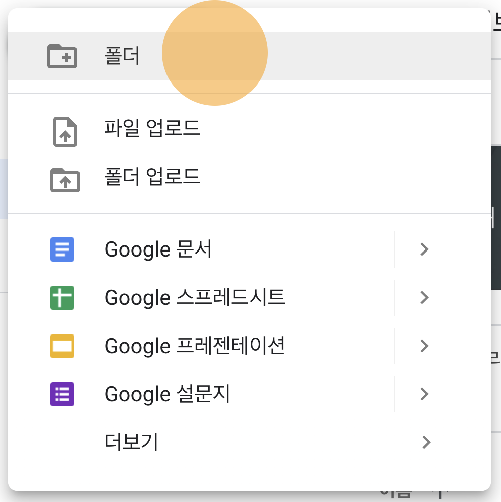 왼쪽 목록 맨 위의 + 새로 만들기 버튼을 한번만 누르고, 나타난 창에서 폴더를 누릅니다.