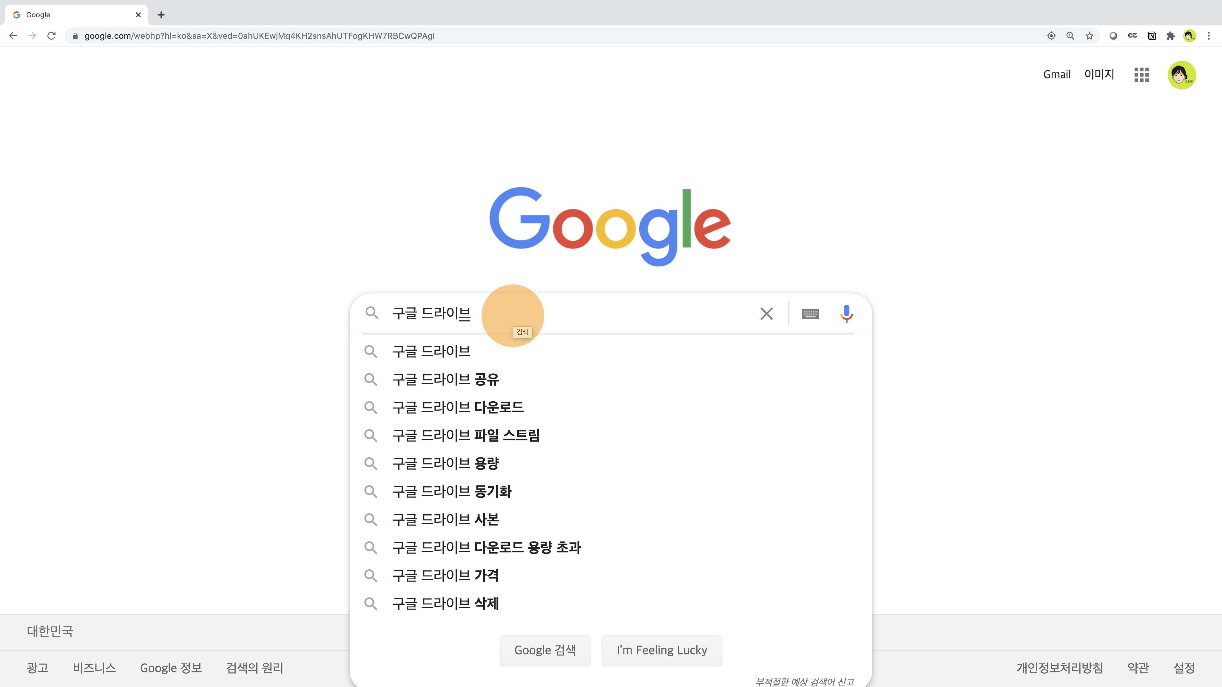 먼저 구글 드라이브에 들어가기 위해 검색창에 '구글 드라이브'를 적고 검색 버튼을 누릅니다.