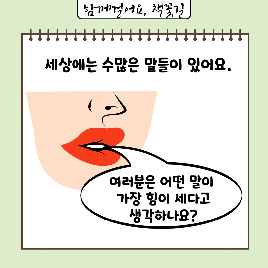 친구들! 이번주에 함께 나누게 된 책은 <세상에서 가장 힘이 센 말>입니다.