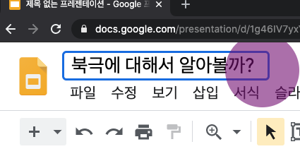 '제목 없는 프레젠테이션'을 클릭한 후 원하는 내용을 적어 프레젠테이션의 이름을 바꿉니다.
