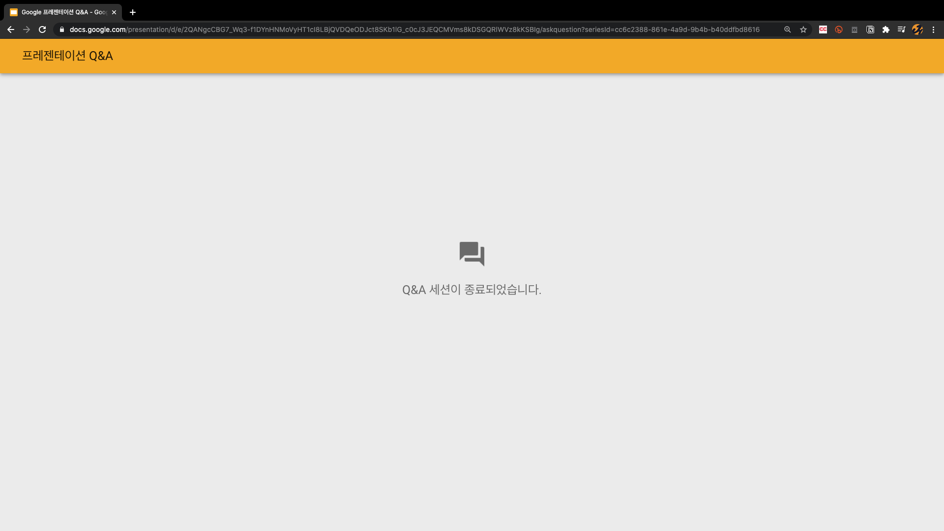 발표 화면 상단에 질문을 제출할 수 있는 링크가 나타납니다.