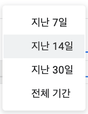 기간은 양 끝의 점선을 움직여 설정할 수 있습니다. 또는 상단의 맞춤설정을 누르면 지난 7일, 14일, 30일 등으로 확인할 수 있습니다.