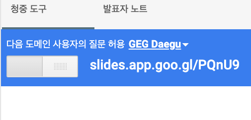 기능을 켜면 위와 같은 두 개의 탭이 생깁니다. 발표 화면에는 상단에 질문을 제출할 수 있는 링크가 나타납니다.