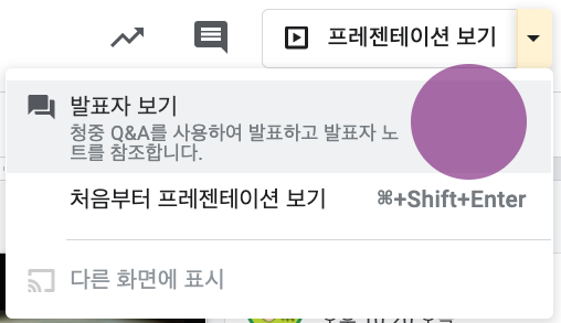 프레젠테이션 보기 옆의 ▼ 버튼을 누릅니다.'발표자 보기 옵션을 누릅니다.