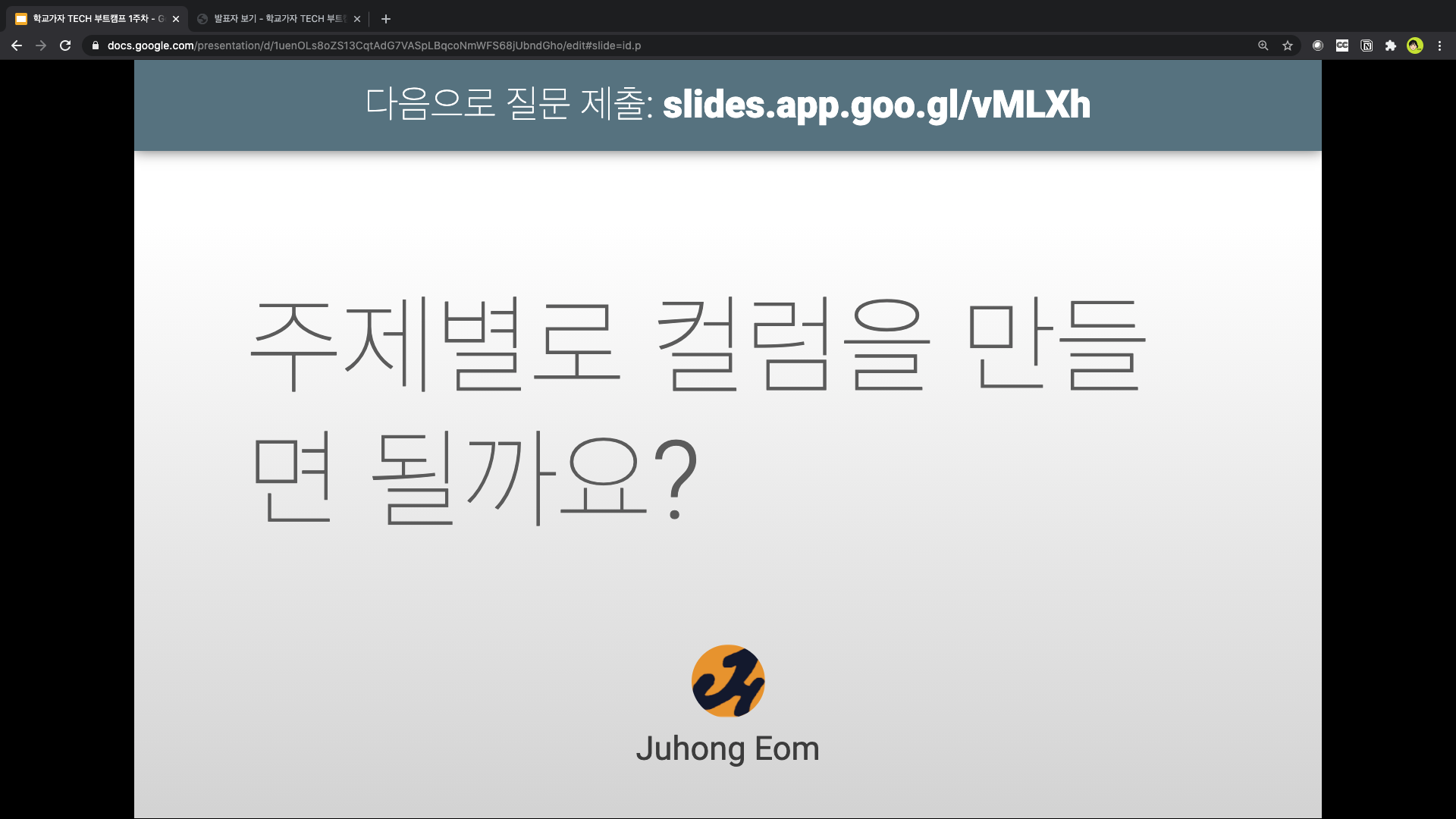 발표 화면 상단에 질문을 제출할 수 있는 링크가 나타납니다.