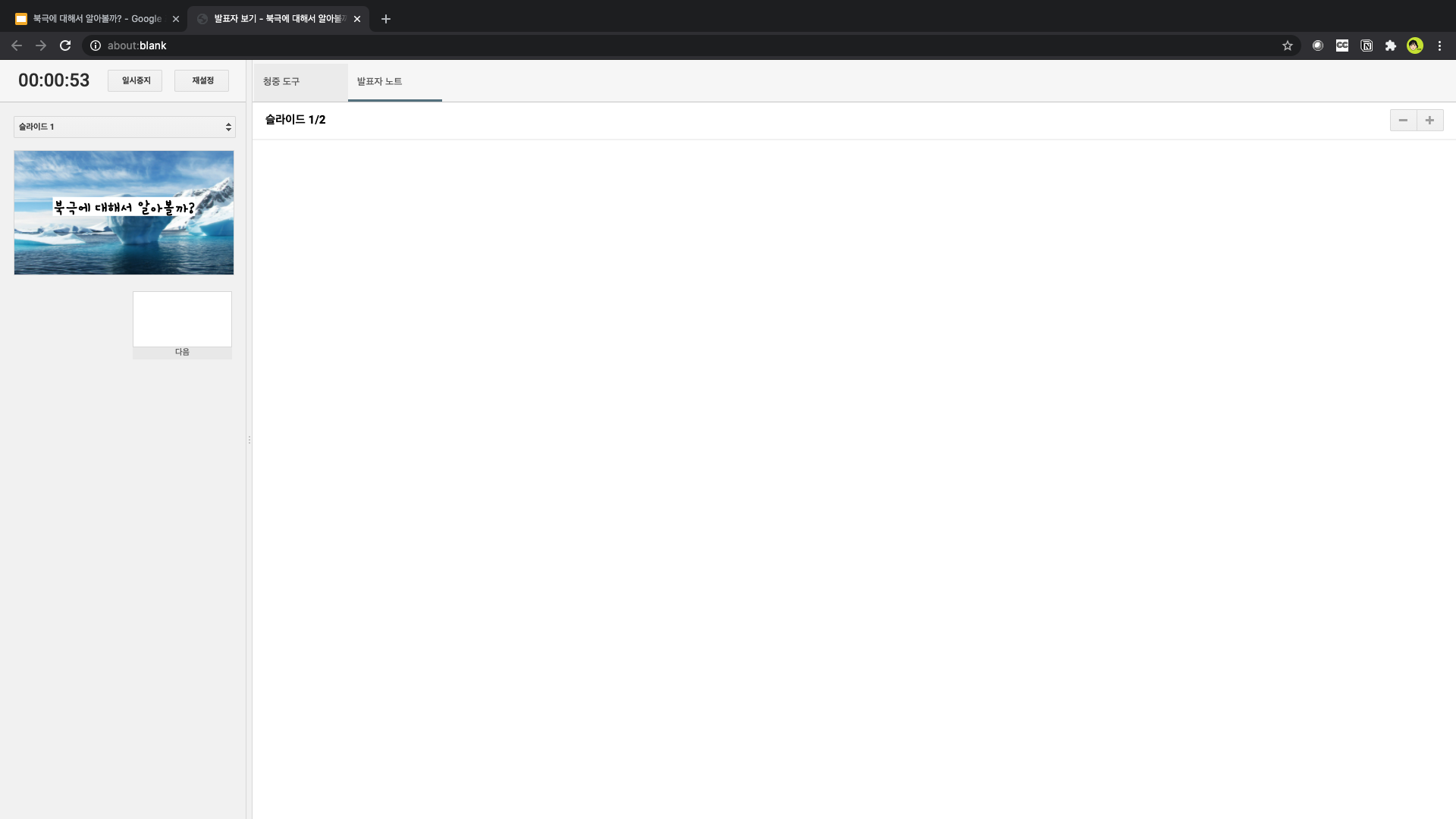 해당 프레젠테이션과 발표자 보기, 총 두 개의 탭이 나타납니다.