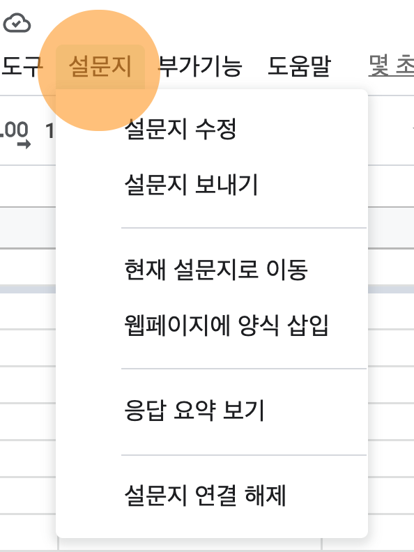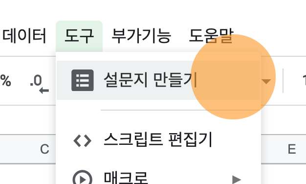 상단 메뉴에서 도구의 설문지 만들기를 누릅니다.