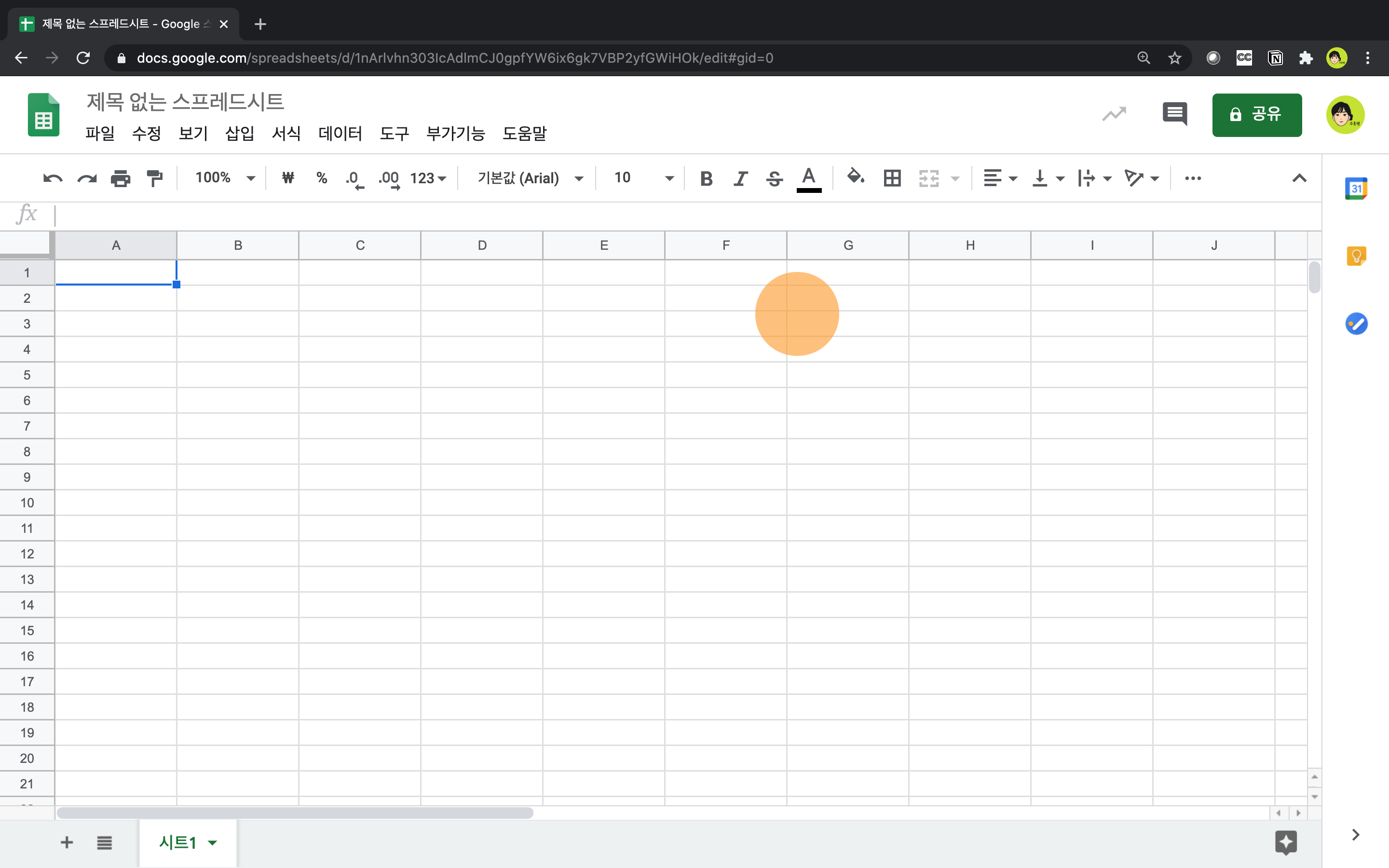'제목 없는 스프레드시트'를 클릭한 후 원하는 내용을 적어 스프레드시트의 이름을 바꿉니다.
