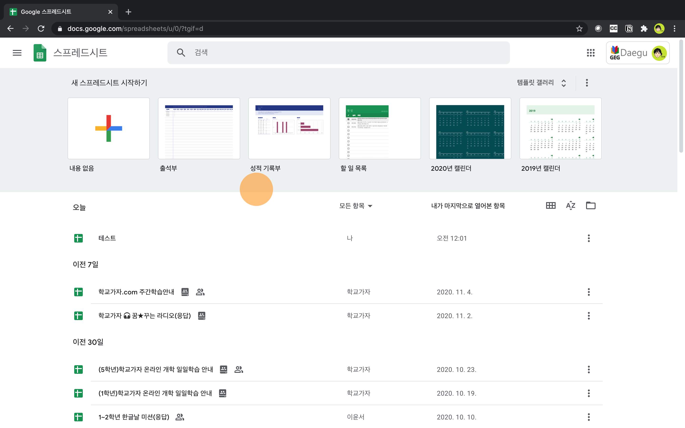 물론, 이 예시들을 활용할 수도 있습니다. 또 구글 스프레드시트로 어떤 것들을 만들 수 있는지 활동의 종류를 탐색할 수 있는 좋은 자료입니다. 우리는 빈 문서를 만들어 요리조리 탐색해 보겠습니다!