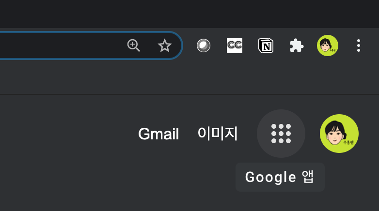 크롬을 사용하고 있다면, 오른쪽 상단에 '이미지'와 프로필 사진 사이의 점 9개 버튼을 클릭합니다. 뜬 창에서 스프레드시트를 클릭합니다.