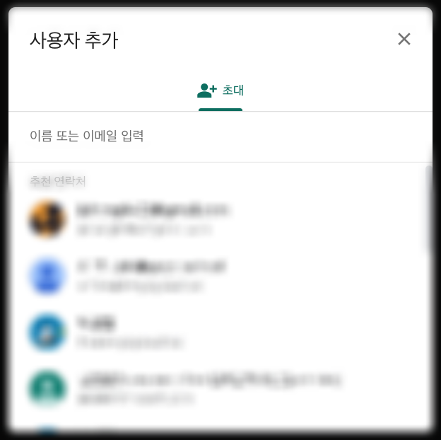 사용자 추가 버튼을 누르면, 가운데 사진과 같이 이름이나 이메일 주소를 입력할 수 있는 창이 나타납니다.