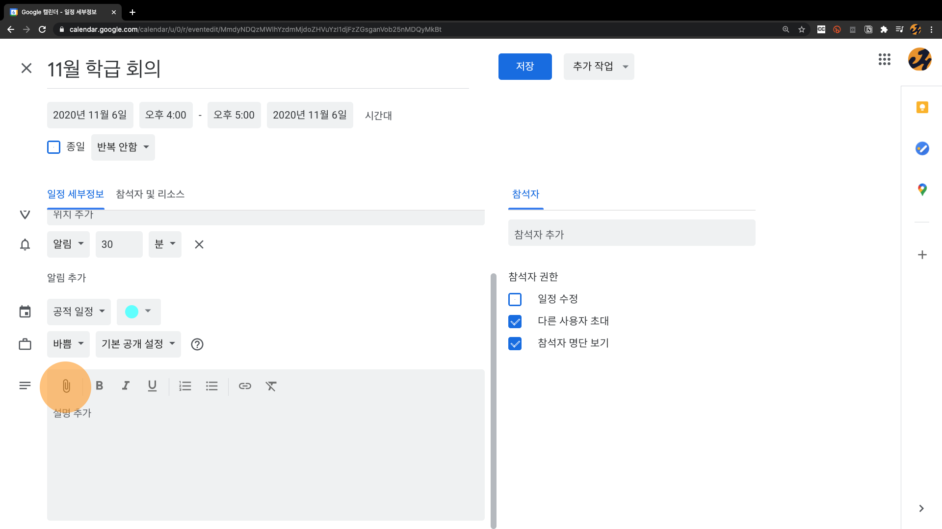 해당 구글 미트와 연결된 일정의 수정 페이지로 들어갑니다.