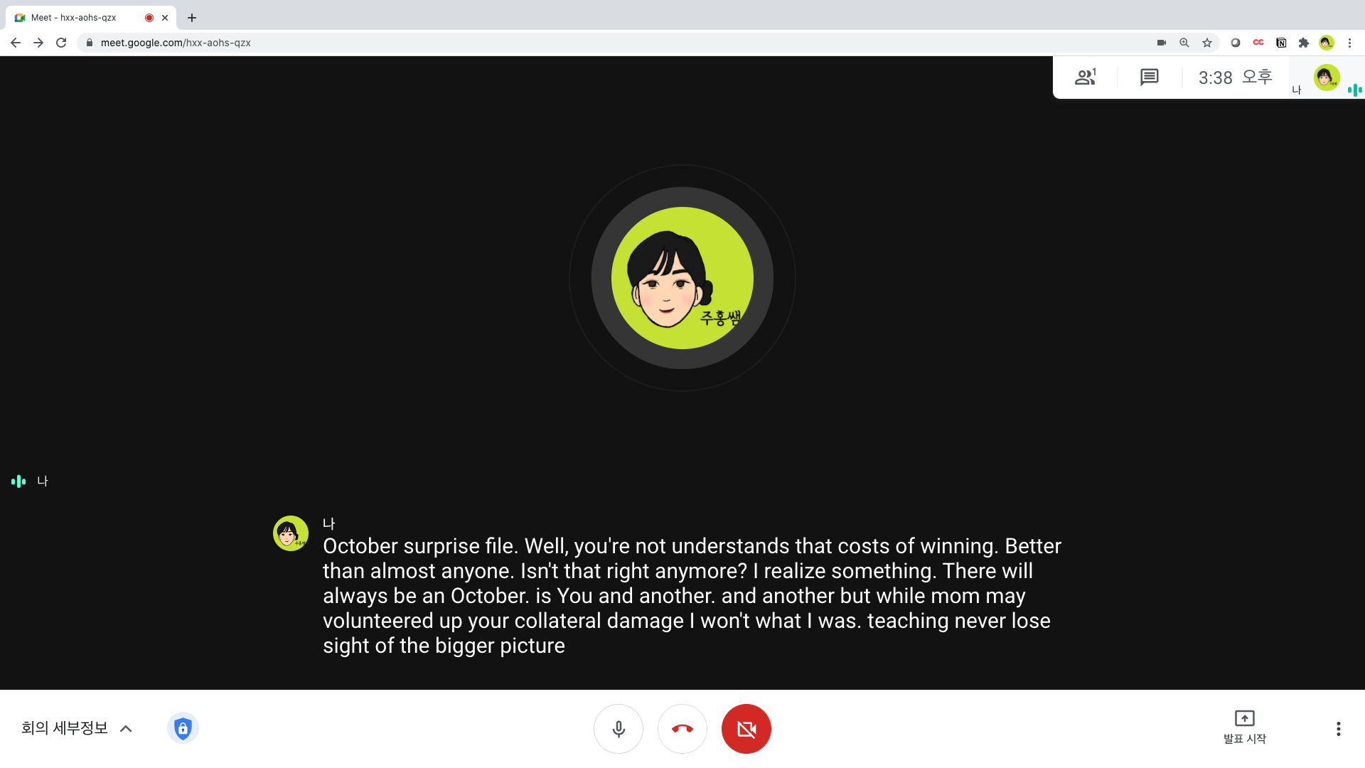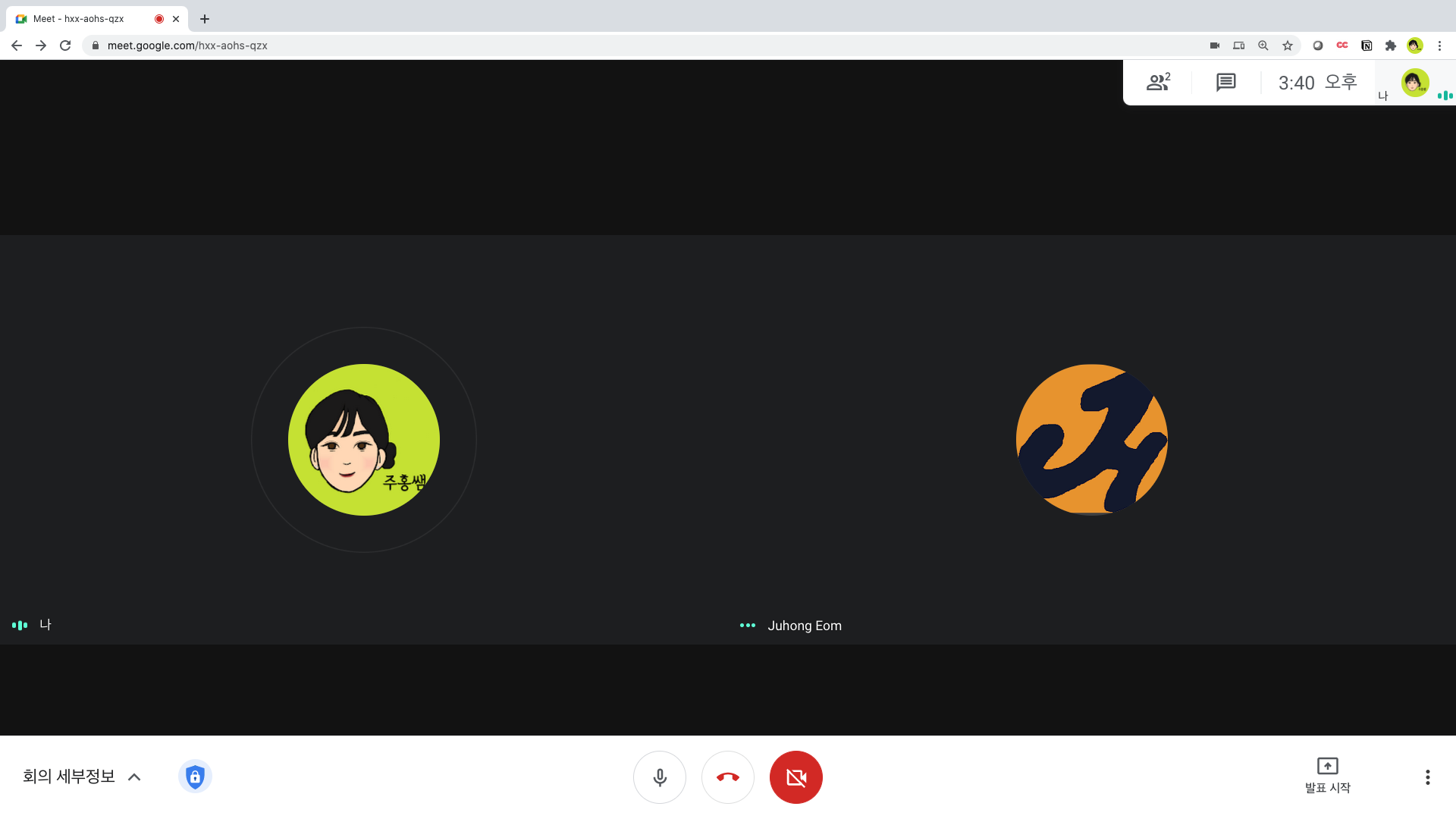해당 창이 닫히고 나면 위의 사진과 같이 회의가 시작됩니다.