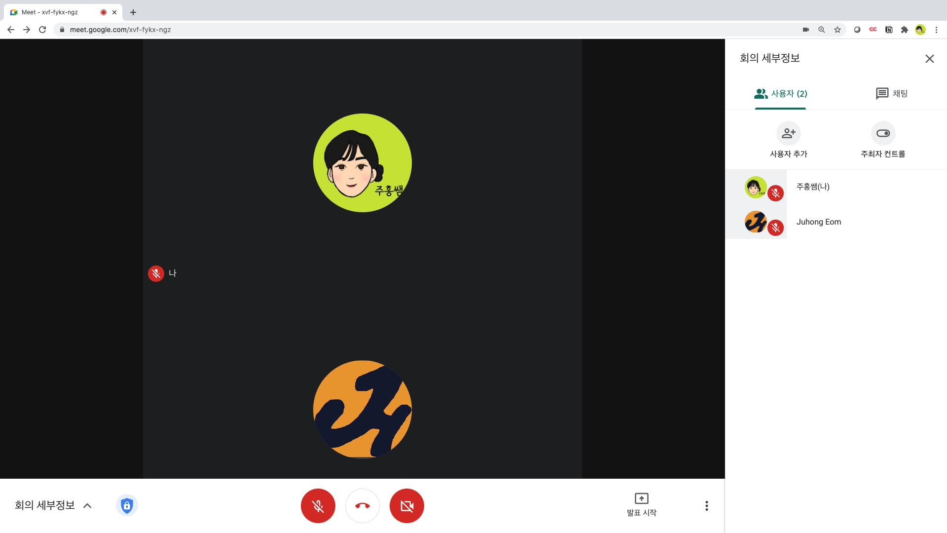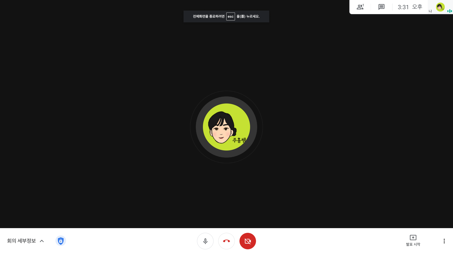 해당 창이 닫히고 나면 위의 사진과 같이 회의가 시작됩니다.