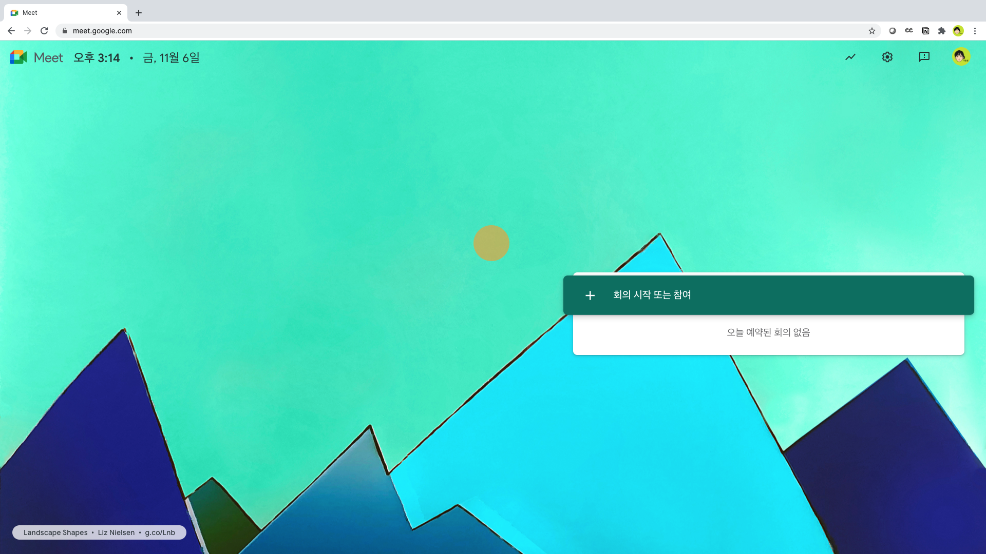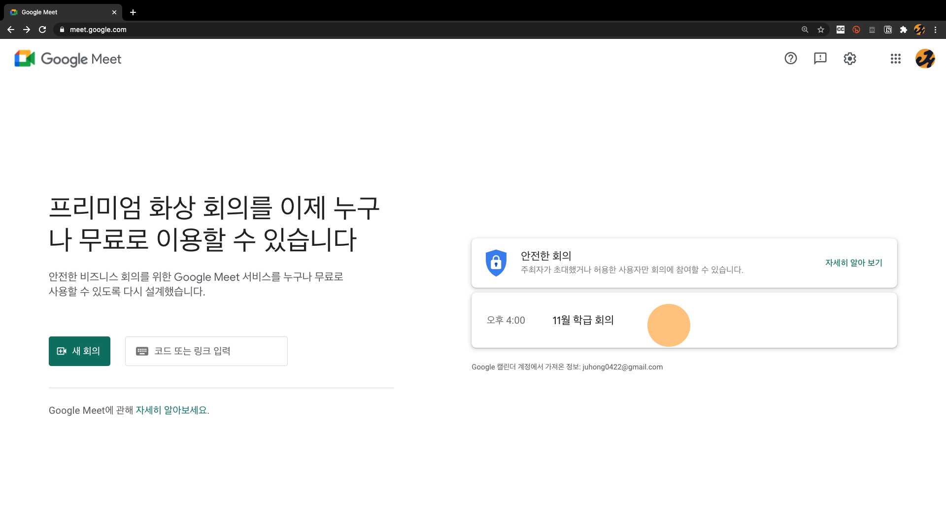G Suite 계정으로 들어간 경우 구글 미트의 첫 화면은 위의 사진과 같습니다.