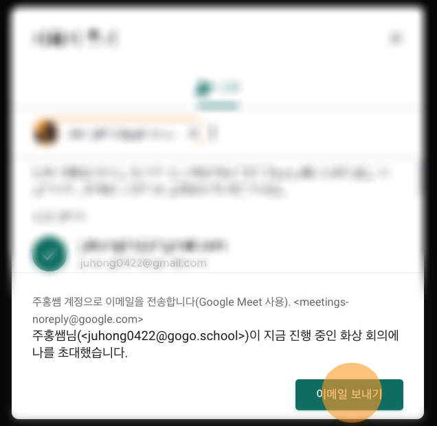 그럼 그 이메일 주소들로 해당 화상 회의의 링크가 있는 이메일이 전송됩니다.