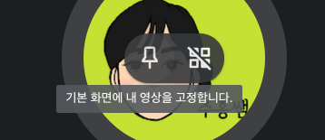 - 핀 모양 버튼: 기본 화면에 내 영상을 고정합니다. 다른 참여자가 말해도 내 얼굴 화면만 보입니다.