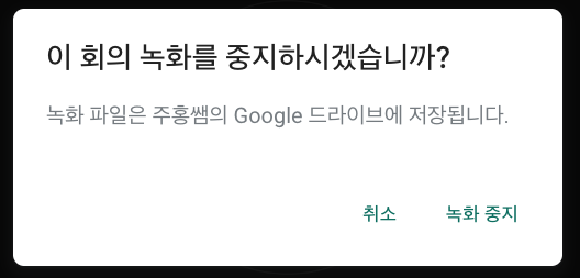 녹화된 영상은 내 드라이브의 Meet Recordings 폴더에 자동으로 저장됩니다.