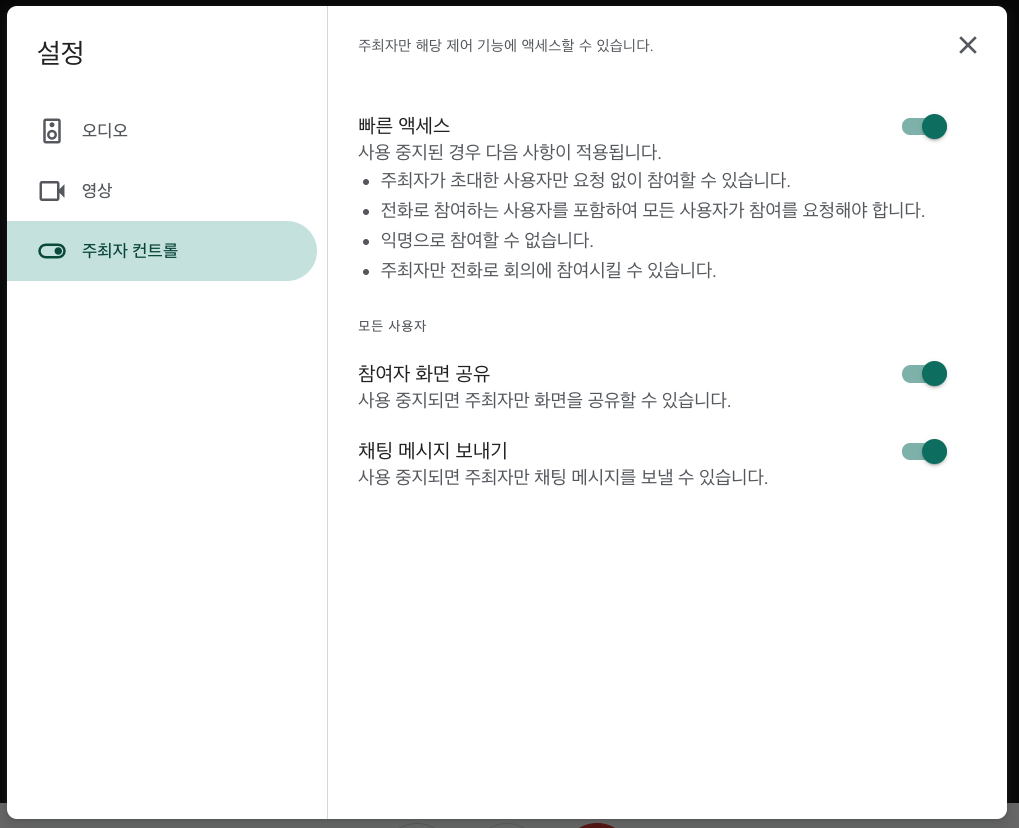 - 주최자 컨트롤 ☛ G Suite 계정만 가능합니다.