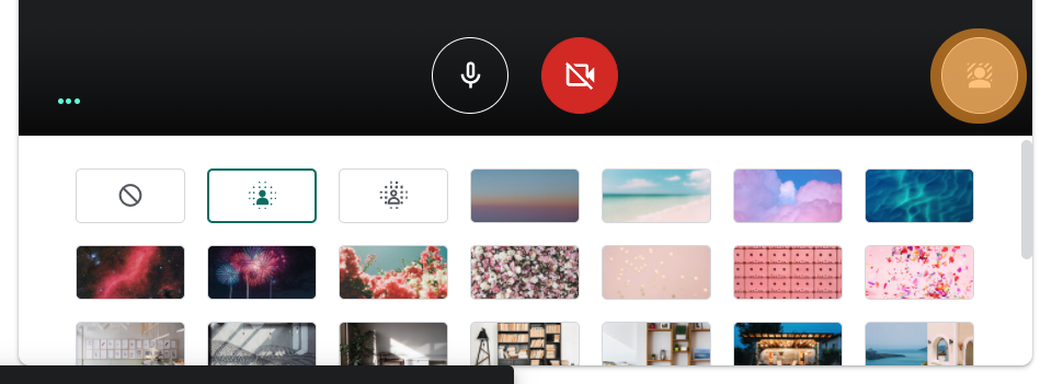 카메라를 켰을 때, 자신의 모습 주변의 배경을 바꿀 수 있습니다. 맨 오른쪽 사진과 같은 사람 모양 버튼을 눌러도 됩니다.