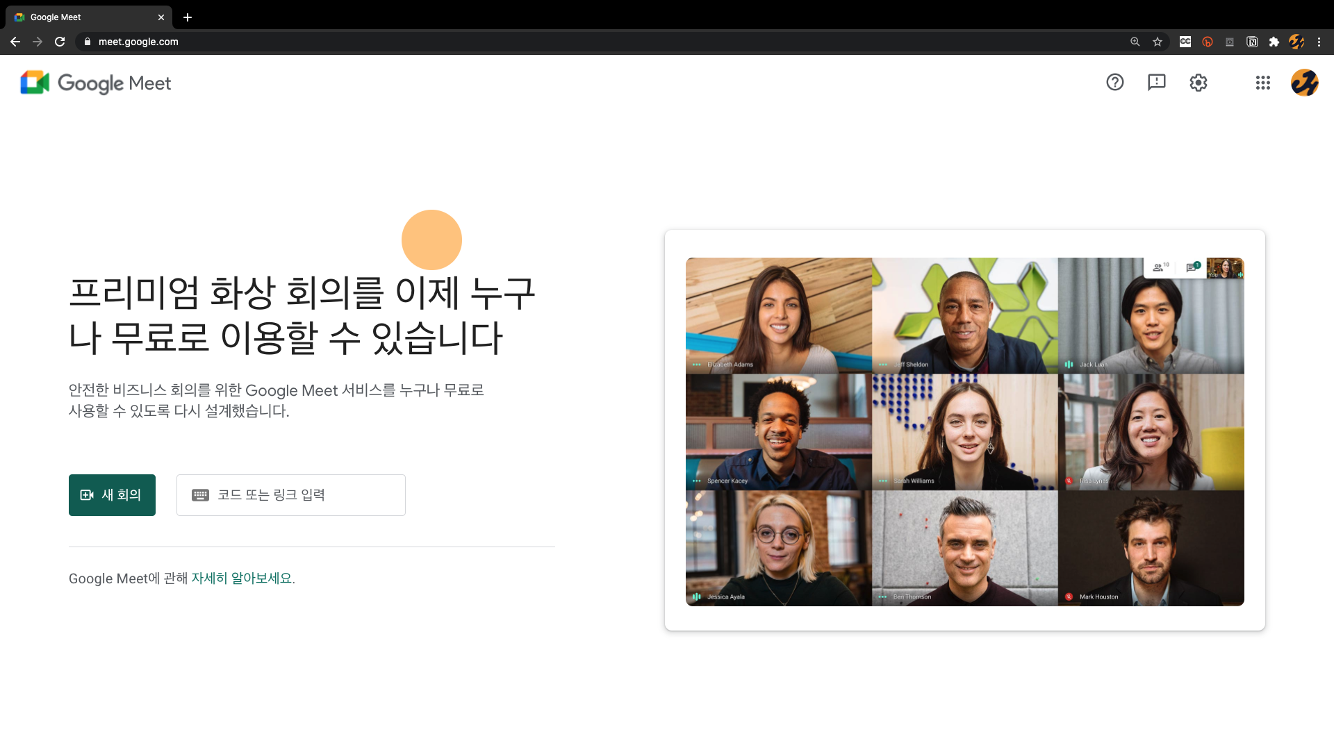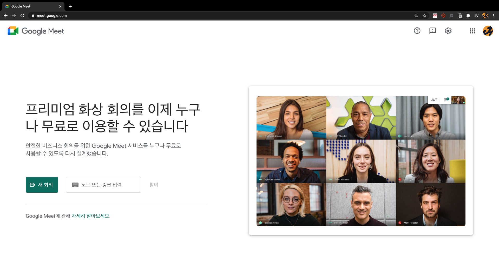 이어 두 번째 주소(meet.google.com/)로 들어갑니다.