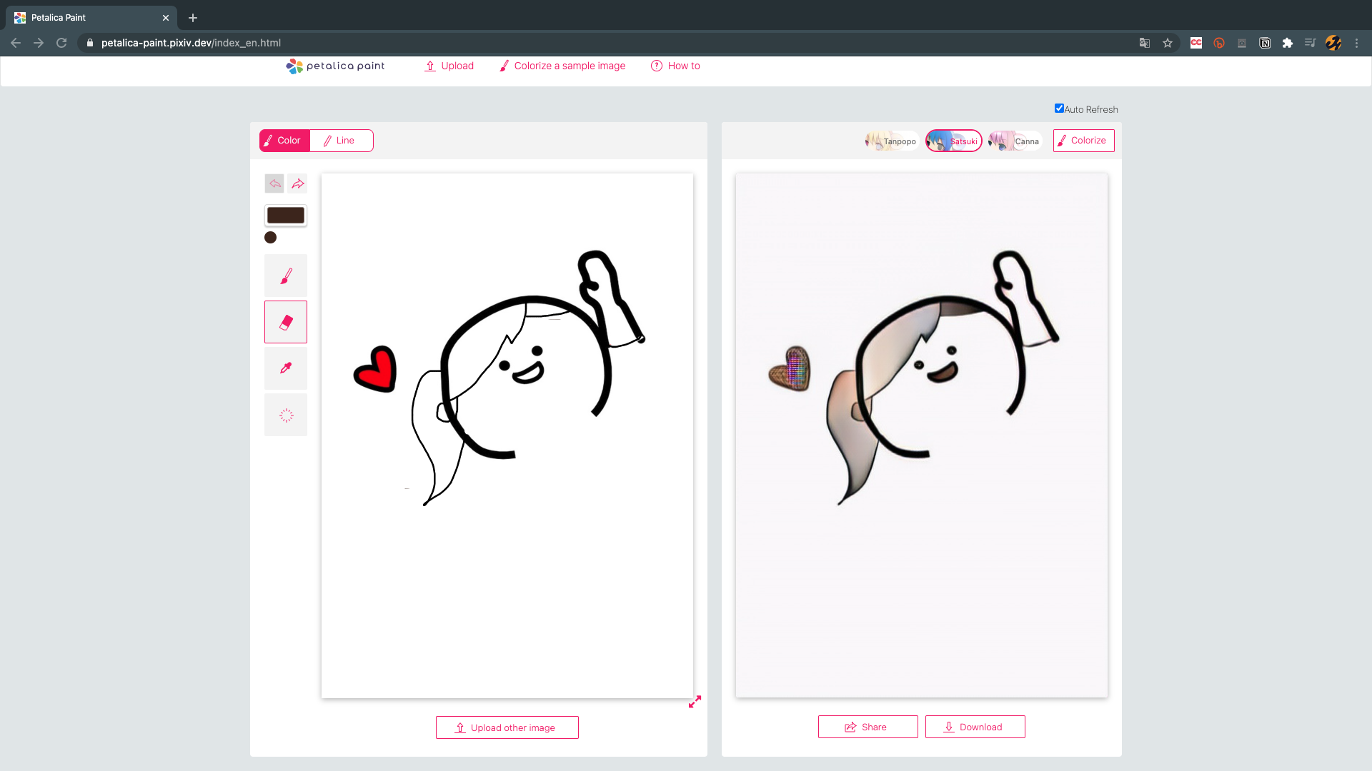 - 소개: 스케치 이미지를 업로드하면 자동으로 채색해줍니다.