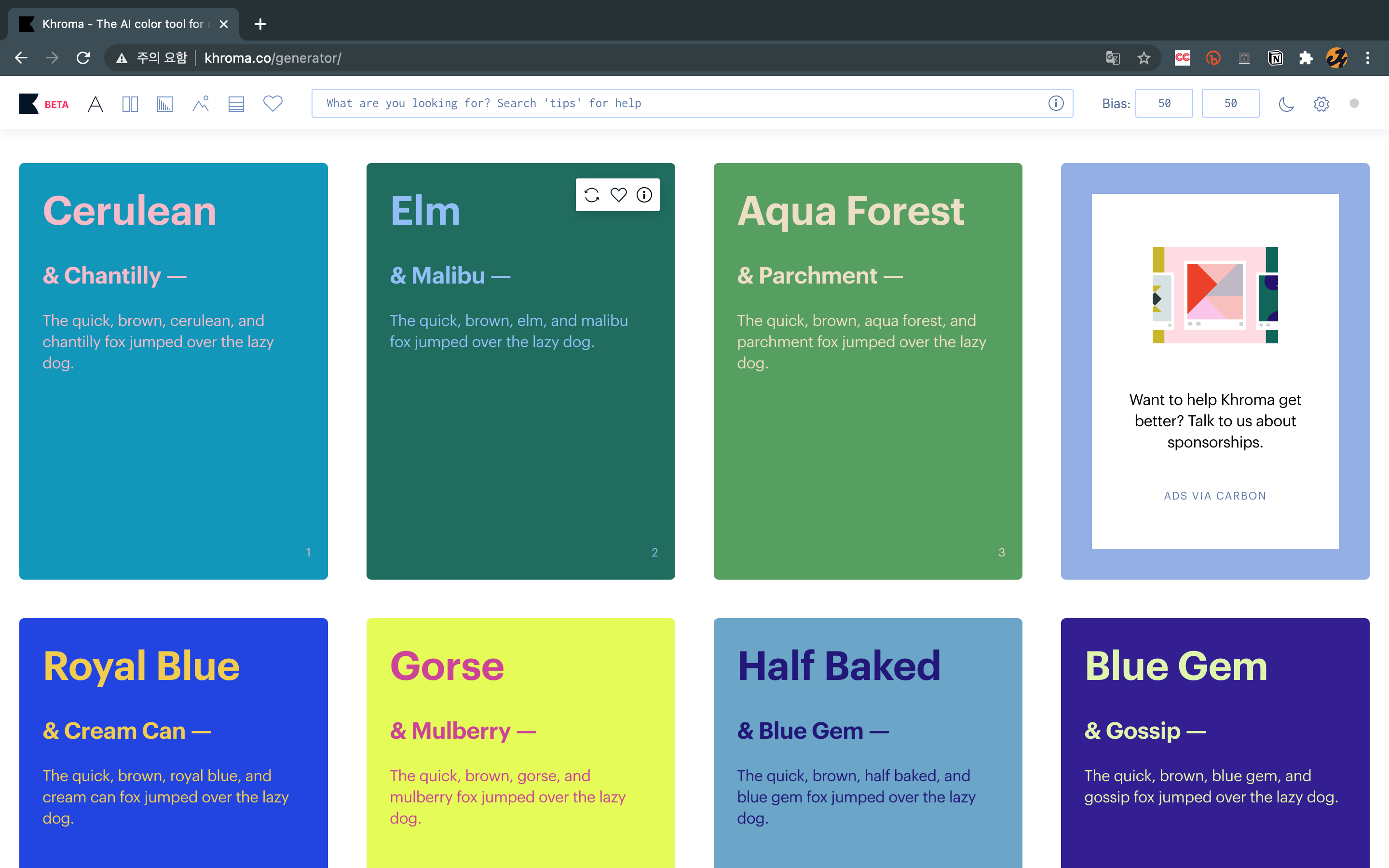 - 이전에 특정 크롬 계정으로 로그인해 색상을 찾아두었다면, 언제든 다시 들어가서 그 조합에 대한 결과를 확인할 수 있습니다.