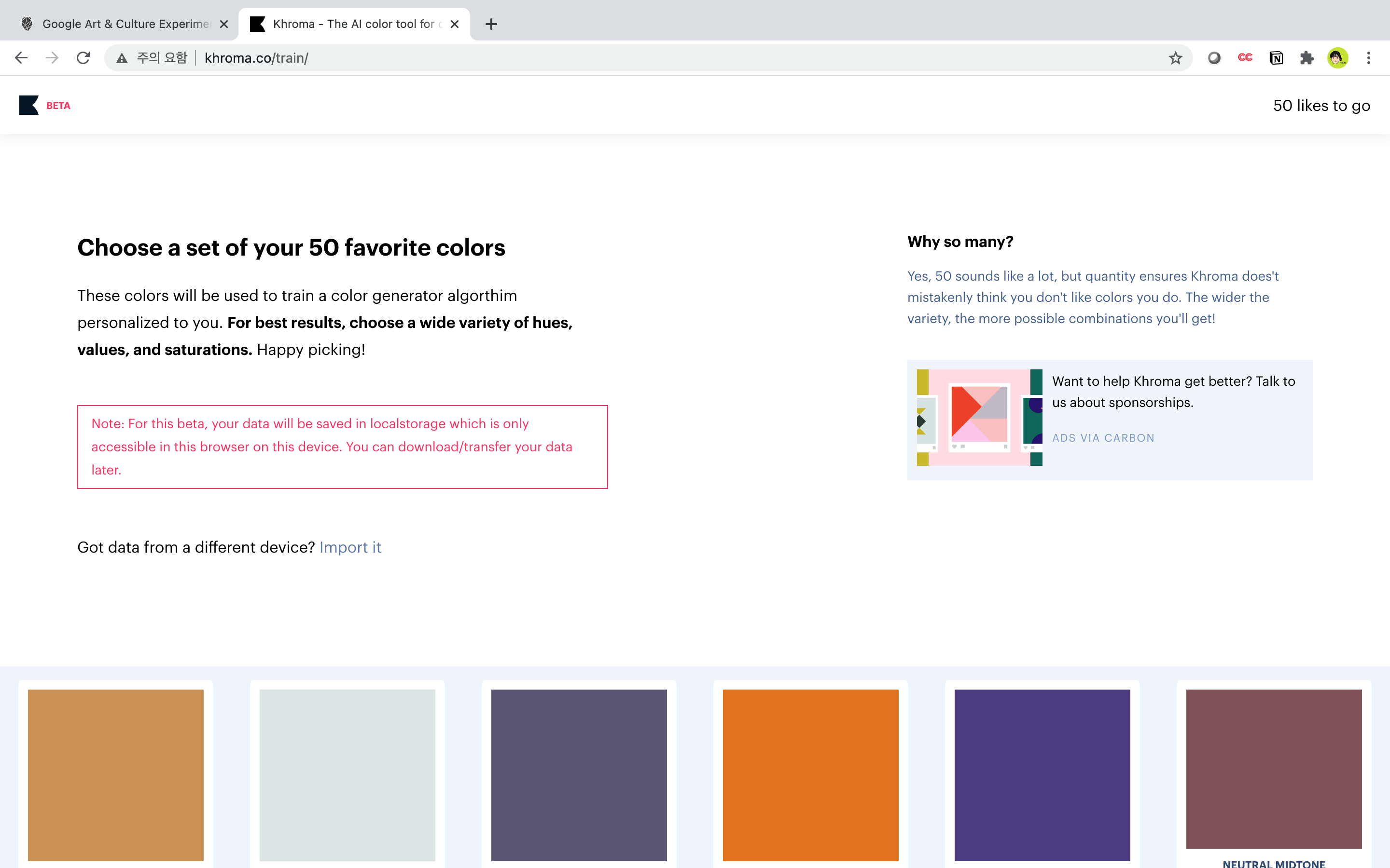 - 이전에 특정 크롬 계정으로 로그인해 색상을 찾아두었다면, 언제든 다시 들어가서 그 조합에 대한 결과를 확인할 수 있습니다.