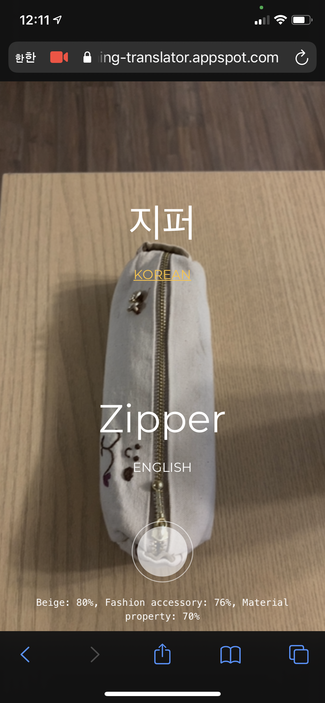 - 소개: 카메라로 사진을 찍으면 대상을 인식하여 글씨로 나타냅니다. 사물의 종류를 인식하기도 하고, 사물의 색을 인식하기도 합니다. 하단의 조그만 칸을 보면 관련된 다른 단어들도 볼 수 있습니다.