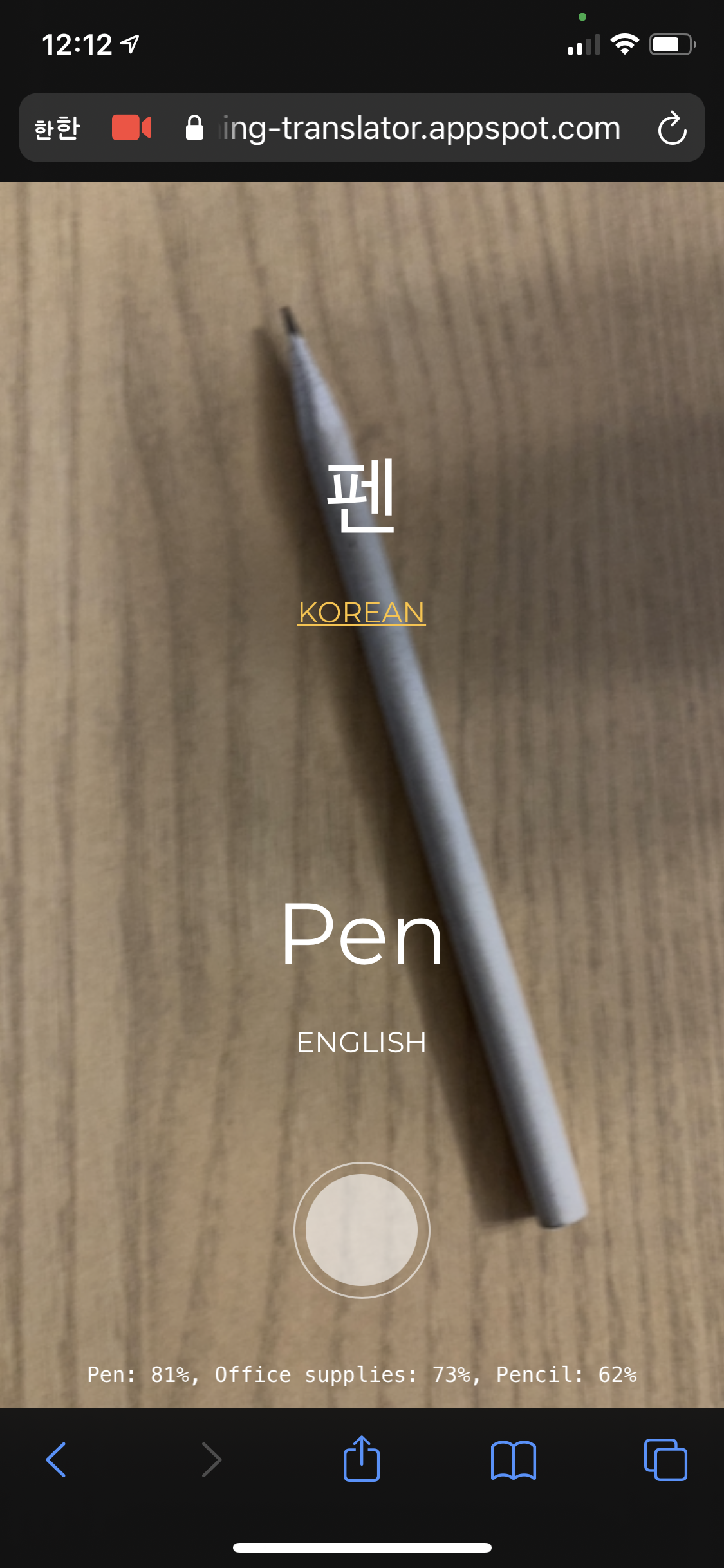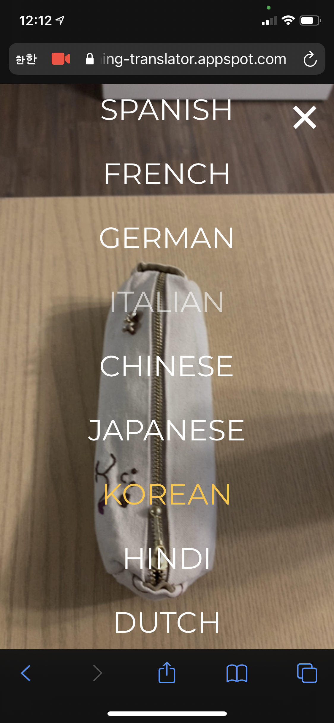 - 이동성을 생각하면 휴대폰이나 태블릿으로 촬영하는 것이 편합니다. - 언어: 기본 언어는 영어입니다. 사진을 찍은 뒤 주황색 언어명을 누르면 위쪽에 나타나는 언어를 바꿀 수 있습니다.