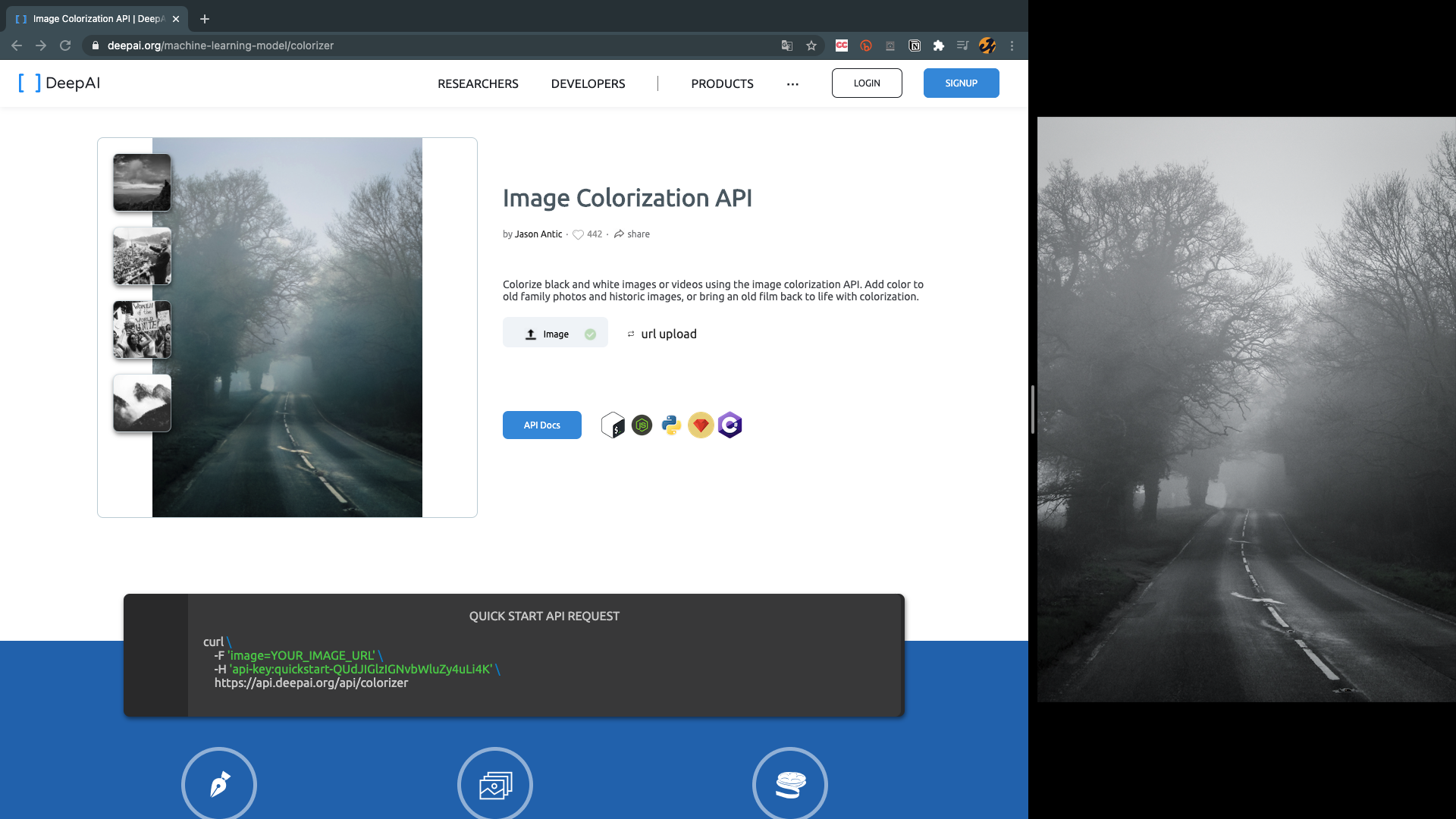 Colorize black and white images or videos using the image colorization API. Add color to old family photos and historic images, or bring an old film back to life with colorization.