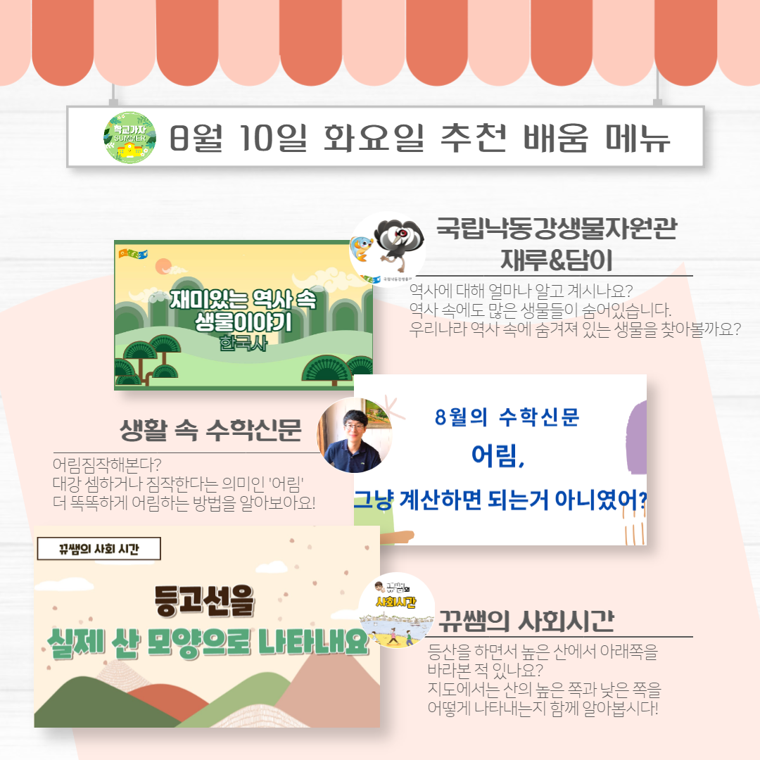 8월 10일 화요일에는 국립낙동강생물자원관과 함께합니다.