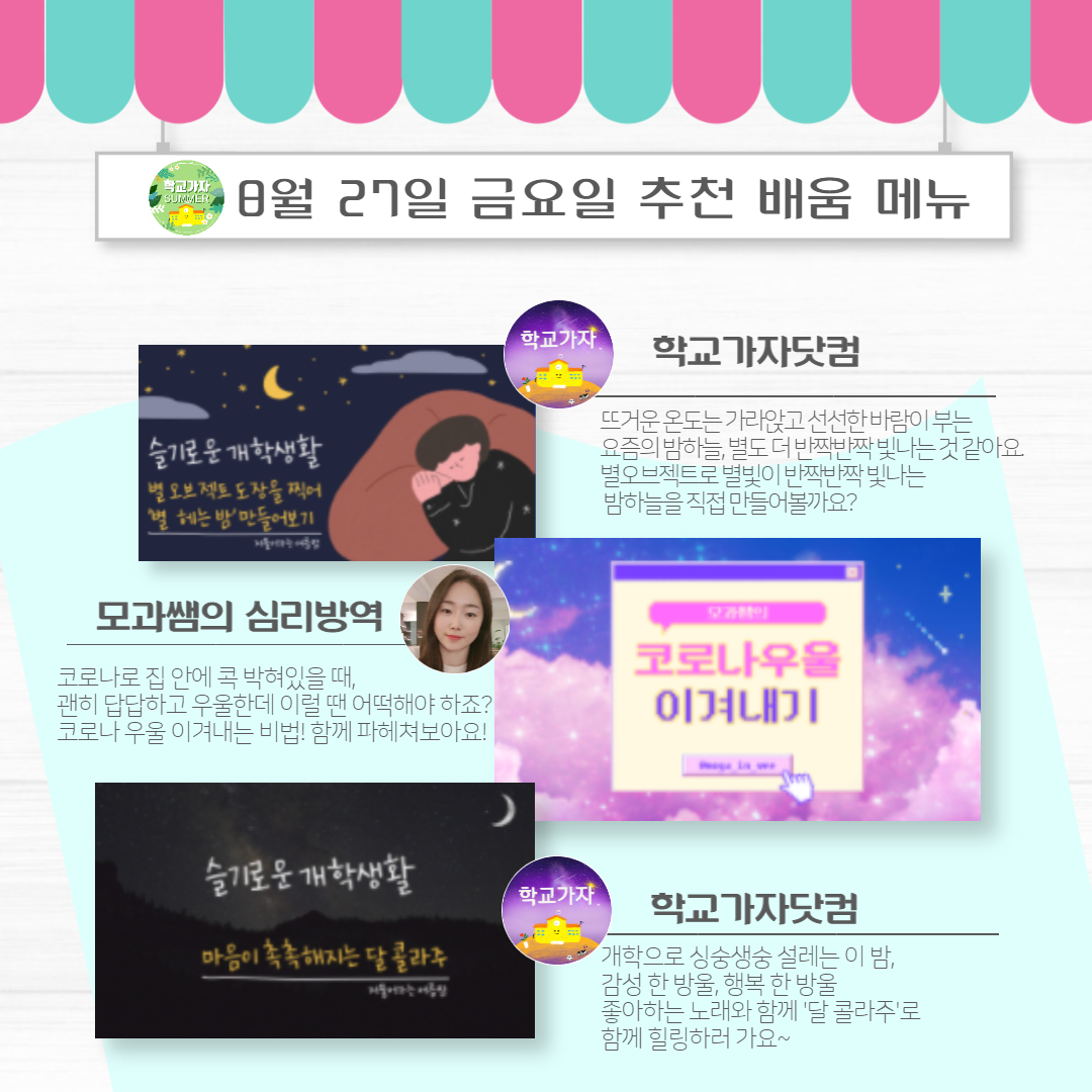 6주(8.23~8.27)은 "저물어가는 여름밤”을 주제로 준비하였습니다.